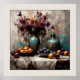 Esta sofisticada vida muerta captura un elegante arreglo de frutas y flores de temporada. Colores ricos y vibrantes y una composición armoniosa lo convierten en una elección perfecta para añadir elegancia atemporal y encanto clásico a cualquier espacio.