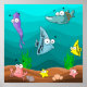 La impresión de cartel personalizado de Vida Marina Bajo el Mar para guarderías de bebés o habitaciones de niños presenta arte colorido con peces de dibujos animados, estrellas de mar, conchas y otra vida marina en divertidos tonos púrpura, rosa, azul y amarillo en agua de color aguamarina con suaves colinas de arena y vida vegetal en la parte inferior es muy adorable y divertida. Puedes personalizarlo agregando o cambiando imágenes, texto y estilo. Asegúrate de ver nuestros artículos de decoración personalizados y coordinados en nuestra tienda en zazzle.com/DIYDecor.