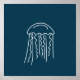 Mariscas de arte con contorno blanco sobre fondo azul marino. Este tema marino acuático y el arte moderno son adorables y divertidos. Deseas medusas.