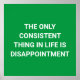 "Lo único consistente en la vida es decepción." es una graciosa frase desmotivacional en una base verde.