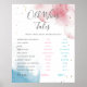 Elegante cartel del juego de Cuentos de Viejas Esposas para tu género revela fiesta con salpicaduras de color de agua en rosa y azul con falso purpurina de oro. Use este tablero para tener un juego de adivinanzas de género durante su revelación de sexo fiesta.