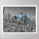 Póster Viejo auto azul en campo de hierba