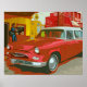 Póster Viejo coche rojo en el antiguo Poster de la estaci