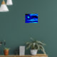 Pintura de la bahía bioluminiscente en Vieques, Puerto Rico, tragando la luna para obtener luz.