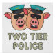 Dos policías de nivel superior muestran dos caras de la policía. Esto representa lo que las personas de diferentes grupos enfrentan dependiendo de las instrucciones del gobierno. Se llama policía de dos niveles y está mal.