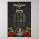 Viking místico encanto con elegantes nudos celtas. Un marco delicado de color dorado con nudos celtas ornamentales rodea el diseño, destacando su encanto místico tradicional. En el centro hay un elemento circular con un barco de color dorado que navega sobre olas suaves, símbolo de viajes compartidos y nuevos comienzos. El círculo está rodeado de nudos celtas suplementarios, en los que se resalta el vínculo y la herencia de la pareja.