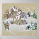 Póster Villa de Invierno: Paisaje nevado e ilustrado.
