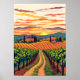 Podrá disfrutar del pintoresco encanto de la Toscana con esta elegante obra de arte que incluye sus famosos viñedos. La escena exhibe colinas onduladas cubiertas de hileras bien arregladas de viñas, su rico follaje verde que contrasta con los cálidos tonos dorados del paisaje iluminado por el sol.