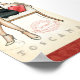 © Andrea Laliberte / Wild Apple. Mujer vestida de moda sosteniendo una copa de vino. La mujer está usando un gorra negro y vestido con una bolsa roja.