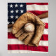 Béisbol vintage, guante y murciélago en una bandera norteamericana vintage