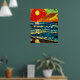 Póster Vintage Beach Sunrise Abstract Ilustracion