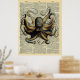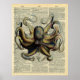 Póster Vintage Botanical Octopus Art Dictionary Page