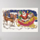 Póster Vintage Christmas, Jolly Santa Claus con Sleigh