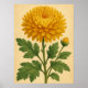 A lush chrysanthemum on a weathered paper background, an intricate autumnal poster full of rich detail and the authentic look of aged botanical art