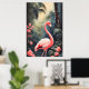 Un bonito flamenco rosa sobre un río en un fondo de bosque tropical.