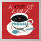 © Michael Mullan / Wild Apple. A vintage looking cup of coffee against a red blackground. The words A Cup of Love are written on the image.