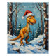 Póster Vintage Dinosaur with Santa Hat Christmas Scene