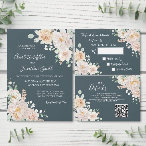 Vintage White Floral Navy Blue WeddingDiseñado por Dreaming Mind Cards