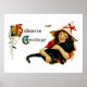 Vintage ilustracion de saludos de Halloween mostrando a un chica con un gato negro.