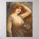 Una encantadora Poster de la Señora de la Vintage con una encantadora señora con el largo cabello jengibre y los ojos conmovedores vestidos con vestido o vestido de encaje vintage de tono de tierra.