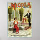 Este poster publicitario vintage es de William Nicol c. 1910. Muestra a Nicola tocando hipnosis y se le aclama como el Príncipe de la magia. El nombre del truco es "El milagro durmiente de la fuerza".