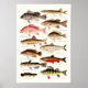 Se trata de una impresión digitalmente realzada de ilustraciones de pescado norteamericanos derivados de un libro antiguo. Puede personalizar del color de fondo.