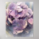 Imagen pintada digitalmente de hortensias púrpura se acercan con un aspecto lavado vintage. Un buen regalo para los amantes del jardín y de las flores. Copyright © www.CuteComfy.com