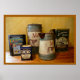 Un surtido de jarras de estaño antiguas que anuncian leche, teacaddies y latas de dulces - la vida fija perfecta para una cocina o comedor, y para personas que aman la nostalgia, el estilo rústico y el aspecto vintage.