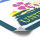 Un encantador escenario de viaje vintage, que representa a una hermosa chica hawaiana, adornada con una guirnalda floral tradicional y una falda hula hula, situada en un exuberante entorno tropical con colores vibrantes de amarillo, rosa y azul.