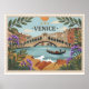 Finding a souvenir that captures the shimmering, romantic essence of the Venetian canals often leads to generic photography that lacks the "Old World" charm of Italy. For many travelers, it is a challenge to find stationery that portrays the architectural majesty of the Rialto Bridge and the quiet grace of a gondola with an artistic, nostalgic touch. This vintage-inspired postage stamp postcard solves that problem by using a sun-drenched Mediterranean palette and a detailed illustration style that highlights the timeless beauty of the Queen of the Adriatic.
