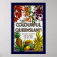 Poster de viajes de época que promueve viajes y el turismo en "Colorful Queensland" en Australia.
