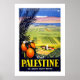 Hermoso poster de viaje vintage de Palestina emitido por la Oficina de Turismo de la Agencia Judía para Palestina en Jerusalén. ¡Visita Palestina y ves revivir la belleza antigua! El poster muestra durísimos melocotones con un amplio paisaje en el fondo.