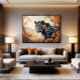Un jaguar majestuoso emerge entre un follaje de tonos cálidos, con una fuerza y un misterio inexuantes. Su mirada penetrante revela la indomable esencia de la naturaleza, convirtiendo el arte en un tributo al poder animal y la vibrante belleza de la vida salvaje.