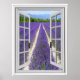 Póster Vista de la ventana falsa de campo de lavanda