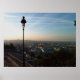 Una hermosa mañana con vistas a la ciudad de París, Francia. La niebla se quema mientras el sol naranja amarillo ilumina el cielo azul sobre la ciudad del amor. Una gran vista desde la iglesia de Montmartre
