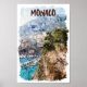 Póster Vista de puerto de viaje retro de Mónaco acuarela