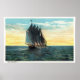 Casco Bay, Maine - Vista de un velero frente a la bahía - Casco Bay, Maine fue creada en 1930. Esta imagen muestra escenas de la Bahía de Casco, ME.