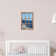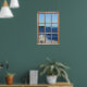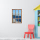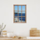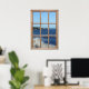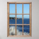 Poster que parece una ventana... espuma marina. Si pudieras mirar por la ventana y ver las aguas azules del océano, la escena podría parecerse a esta. Esta falsa cristalera con su marco de madera mira a las olas que se estrellan en un rociado de espuma marina. A lo lejos se encuentran los edificios blancos de un pueblo costero y las verdes colinas. Todo lo que tienes que hacer es imaginar el sonido de las olas y el grito de los pájaros del mar para creer que estás justo al lado del mar.