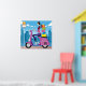 Vista lateral de una mujer con regalos en una moto. Derechos reservados Eastnine Inc.