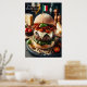 Sumérjase en una vista veneciana de los sabores con esta deliciosa hamburguesa de trufas italiana. Una tierna parcela de ternera infundida con delicado aceite de trufa negra está cubierta con cremozzarella fresca, tomates secos al sol y pesto de albahaca aromático, todo ello enclavado en un suave rollo de ciabatta. Una pequeña bandera italiana le da un toque de encanto italiano, mientras que el parmesano envejecido y una botella de Prosecco completan esta delicia culinaria italiana.