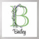 Este cartel monograma de letra B será un acento personalizado perfecto para viveros, dormitorios y otros espacios.