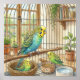 Una dulce y suave ilustración que presenta a una mamá Parekeet y sus polluelos, capturando un momento de paz en el acogedor mundo de Ivory Nest.