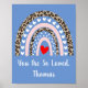Personaliza este bonito cartel de pared de vivero con patrón de leopardo arcoíris boho con corazones. Agrega su nombre al dicho o cambia el dicho por completo.