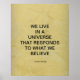 Vivimos en un universo que responde a lo que creemos. Este poster de la cita espiritual se basa en las enseñanzas de la Ley de Atracción y Física Cuántica. Cita y obra de arte de Corbin Henry.