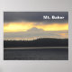 Vistas al monte Baker. Situado en la cordillera de Cascade, cerca de Bellingham, Washington. También aparece el texto "Mt. Baker". De una foto tomada por el artista. Conocido como Koma Kulshan (centinela blanca) por una tribu nativa estadounidense, el monte Baker domina el horizonte desde Bellingham, Washington y Vancouver, Columbia Británica. A 3000 metros, es la tercera montaña más alta del estado de Washington y la quinta más alta de la cordillera de Cascade. Es visible desde gran parte del Gran Victoria, Gran Vancouver y, al sur, desde Seattle (y en días claros Tacoma). En los días de invierno fríos y claros, los incrementos dramáticos en la columna de vapor que aumentan continuamente desde el cráter Sherman pueden alarmar a los residentes locales. Este aparente aumento de la energía del penacho se produce debido a la condensación del vapor en el aire frío y calmado. La montaña, un estratovolcán aislado, es el más glaciado de los volcanes de la Cordillera de Cascada después del Monte Rainier. El área de esquí Mount Baker batió el récord mundial de nevadas registradas en una sola temporada—1,140 in. El monte Baker ocupa el segundo cráter termalmente activo de la Cordillera de Cascada después del Monte Saint Helens. Si bien el volcanismo ha persistido aquí durante unos 1,5 millones de años, es probable que el cono glaciar actual no tenga más de 140.000 años y posiblemente no tenga más de 80.000 años. Los edificios volcánicos más antiguos se han erosionado en su mayor parte debido a la glaciación. El monte Baker ha estado muy activo en los últimos 10.000 años y ha estallado 13 veces en la historia registrada. Su última erupción fue en 1880. En 1975-1976 se produjo una liberación de vapor, pero no siguió ninguna erupción. El primer registro escrito de la montaña es de los españoles. El explorador español Gonzalo López de Haro lo cartografió en 1790 como la Gran Montaña del Carmelo (Gran Monte Carmel). El explorador George Vancouver rebautizó la montaña por el tercer teniente Joseph Baker de HMS Discovery, que la vio el 30 de abril de 1792.