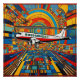 La A.I. creó una interpretación surrealista de un paisaje surrealista futurista abstracto con estructuras imponentes con platillos voladores y aviones en vuelo navegando entre ellos.