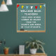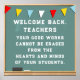 Inspiradora "bienvenida de vuelta" para profesores de escuela que incluyen pizarra y presupuesto.