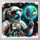Un astronauta solitario flota en el espacio contra el vívido telón de fondo de la Tierra y numerosos cuerpos celestes. Colores vibrantes y detalles intrincados capturan la vastedad y el misterio del universo.