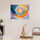 Este diseño abstracto vibrante captura la esencia de una danza cósmica, con un vorágine de colores giratorio centrado en un núcleo radiante tipo sol. Las capas azules, violetas, naranjas y amarillas se mezclan sin problemas, creando una sensación de profundidad y movimiento. Esto evoca la sensación de ser arrastrado al corazón de un fenómeno celeste, donde la calidez de una estrella se une a la fría extensión del espacio. Para aquellos que aprecian los diseños atrevidos y contemporáneos con un tema celeste.