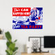 Poster de estilo vintage instando a apoyar a los candidatos del Tea Fiesta en las urnas. El poster dice "¡Esto puede pasar aquí! Vota a un Fiesta de té que representa a un hombre trabajador, paga en mano recibida por su familia después del trabajo.